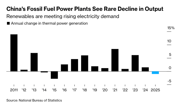 In a move that sent ripples through global energy markets this week, China recorded its first annual drop in coal power generation in over a decade.